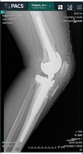 In maart '21 kreeg ik mijn 5de prothese bij de Dr. T.C. in Herentals . Een maand later zat mijn knie los en waren de bouten afgebroken. Terug onder het mes en er werd een plaatje gestoken dat nu moervast zit.